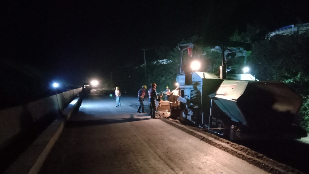 為實現(xiàn)年底流山鎮(zhèn)通鄉(xiāng)目標(biāo),建設(shè)辦督促監(jiān)理單位、施工單位加大人員設(shè)備投入,指導(dǎo)其制定第四季度施工倒排計劃,科學(xué)組織施工。按照施工倒排計劃,利用水穩(wěn)層試驗段攤鋪積累的寶貴經(jīng)驗,11月初宜山路開始在宜州段全面展開水穩(wěn)層施工。在白天熱火朝天的施工現(xiàn)場和晚上施工照明大燈照亮的夜班加班現(xiàn)場,管理人員專人指揮調(diào)度機械設(shè)備,施工工人在水穩(wěn)層施工區(qū)有條不紊地忙碌著,仿佛是在工地“五線譜”上演奏一曲通鄉(xiāng)公路之歌。