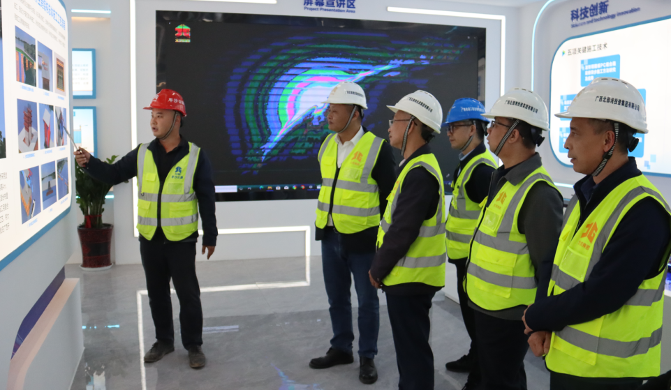 隨后一行人前往平沙路飛龍大橋新匠坊參觀,聽取飛龍大橋新型超大組合梁橋波形鋼腹板的研發(fā)及設(shè)計(jì)理論,了解相關(guān)科技創(chuàng)新以及關(guān)鍵施工技術(shù),并召開座談交流會(huì)。