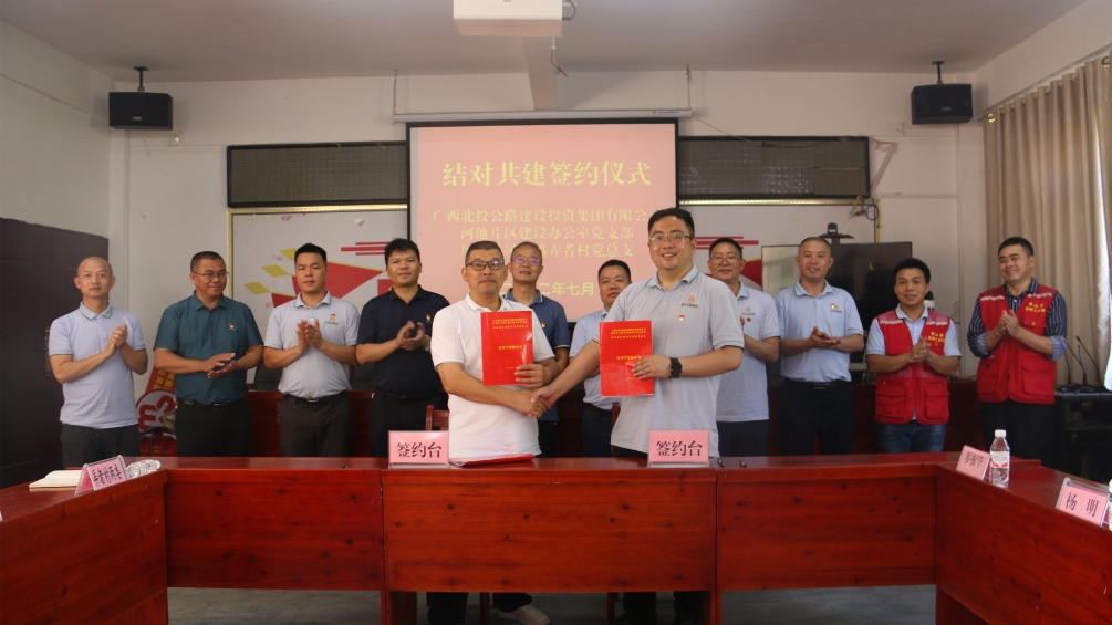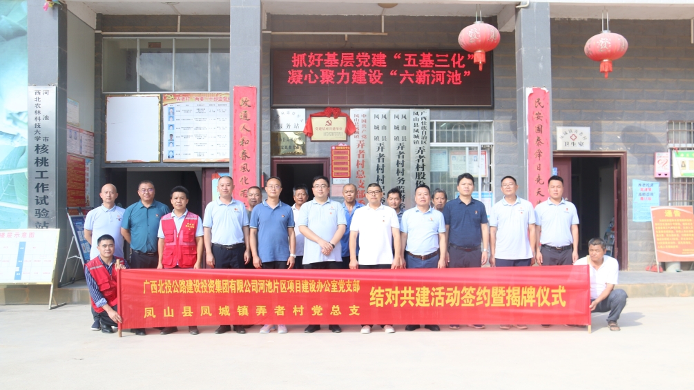 為進(jìn)一步落實(shí)基層黨建“五基三化”攻堅年行動方案,提高駐村幫扶工作實(shí)效,搭建黨建引領(lǐng)鄉(xiāng)村振興的平臺,7月12日,北投公路集團(tuán)河池片區(qū)項(xiàng)目黨支部與公司結(jié)對幫扶村黨支部鳳山縣弄者村黨支部舉行黨建共建簽約暨揭牌儀式。鳳山縣縣委常委、副縣長王志平,集團(tuán)公司黨委副書記、董事、工會主席周強(qiáng)出席活動。