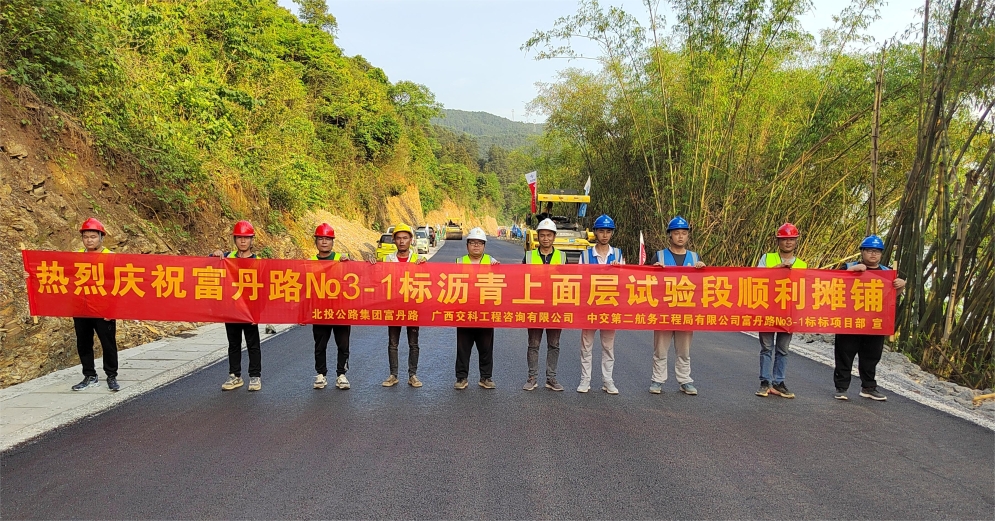 5月1日國(guó)際勞動(dòng)節(jié)當(dāng)天,伴隨著攤鋪機(jī)、壓路機(jī)的轟鳴,富丹路(二期)K73+800~K74+300段瀝青上面層試驗(yàn)段順利鋪筑,標(biāo)志著北投公路集團(tuán)富丹路(二期)向年度通車(chē)目標(biāo)邁出關(guān)鍵性一步。