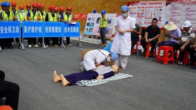 為提升項(xiàng)目建設(shè)應(yīng)急處置能力,筑牢安全生產(chǎn)防線,6月13日,建設(shè)辦聯(lián)合賀州市交通運(yùn)輸局、市應(yīng)急管理局以及富川瑤族自治縣柳家鄉(xiāng)衛(wèi)生院等多個(gè)部門,開展富平路(賀州段)2025年邊坡坍塌事故應(yīng)急救援演練。